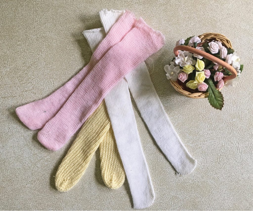 Pink shoes and white buttoned boots are shown in their original see-through packets, which have green trim and original Robin Woods labels.