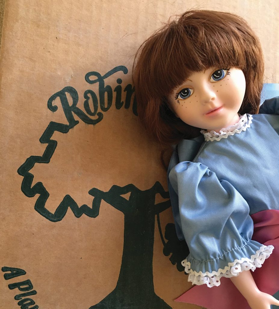 Plain Jane is a limited-edition doll from the American Children collection. She is shown beside her original Robin Woods, Inc., box.